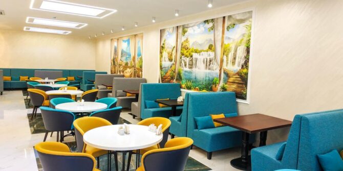 In the institution “Chef” are breakfasts, lunches and dinners on the system “Buffet”. Here you can eat not only dishes prepared by professional chefs, but also fresh fruits and vegetables, as well as pastries and desserts. The restaurant is open from 8 a.m. to 8 p.m. every day.