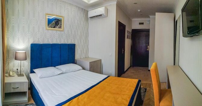 - Economy standard. Room for two people. Each room has a double bed 160×200 cm and a work space.