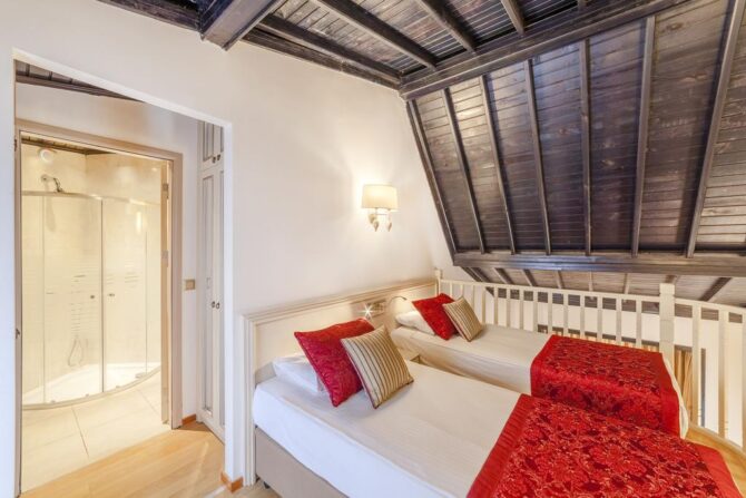 The five-star hotel boasts an impressive number of rooms (a little more than five hundred different rooms): several categories of apartments are available for booking, located both in the main building and in detached two-story bungalow buildings. The shelters can comfortably accommodate a family of five, and extra beds for younger guests are available on request.
