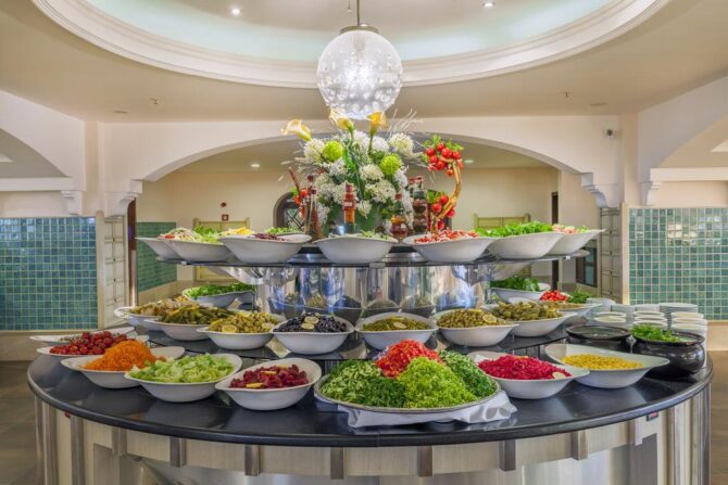 Travelers who have visited the hotel complex “Sunrise Resort”note the excellent organization of food: the hotel has several restaurants offering a variety of dishes of the most unusual cuisines (Indian, Japanese, French, Russian, as well as local). You can choose food both according to the common buffet system and the menu (a special menu is provided for children). Many tourists highly appreciated the fresh seafood prepared by the chef – we advise you to try.