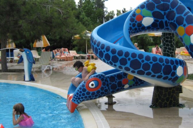 Also, the hotel staff is ready to offer travelers a lot of entertainment that will appeal to both adult guests and young children: several swimming pools (normal, children’s, panoramic and in the building), a fitness center where you can book classes with a personal trainer, a SPA-lounge where you will be offered a relaxing massage and treatment procedures, a sauna, a jacuzzi and the famous Turkish bath. Children will especially like the water slide, as well as toys by the pool – parents do not have to worry about anything.