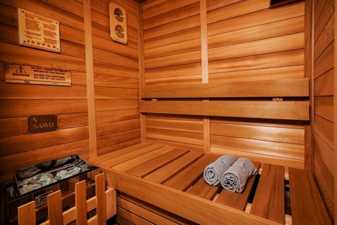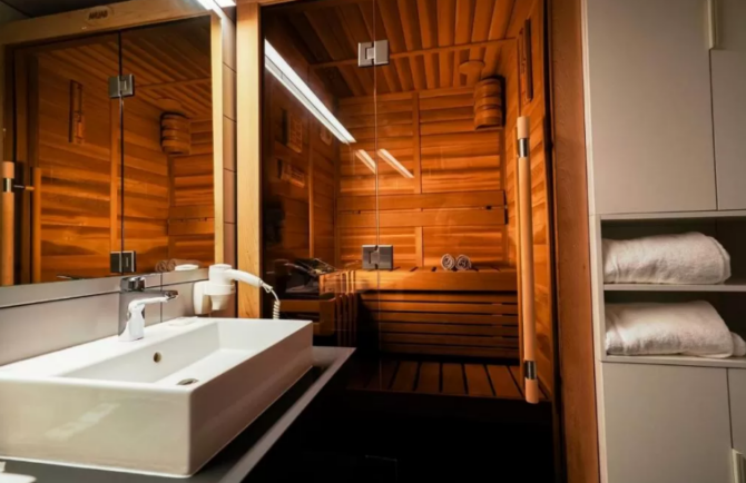 Throughout the year, guests of the Tochka na Karta Hotel can relax in the compact sauna located inside each room. On the territory of the hotel complex there are contemplation zones, where vacationers are happy to consider the landscapes of Lake Ladoga opening before them.