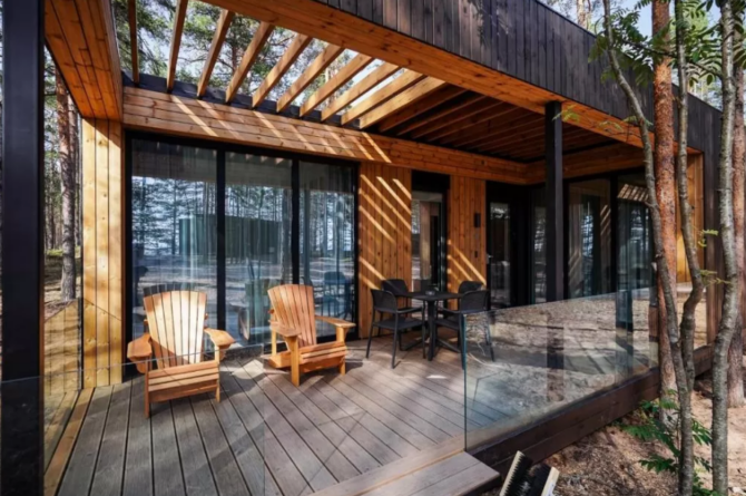 - stylish modern design of the rooms, from the windows of which the surrounding forests and the water area of Lake Ladoga are clearly visible.