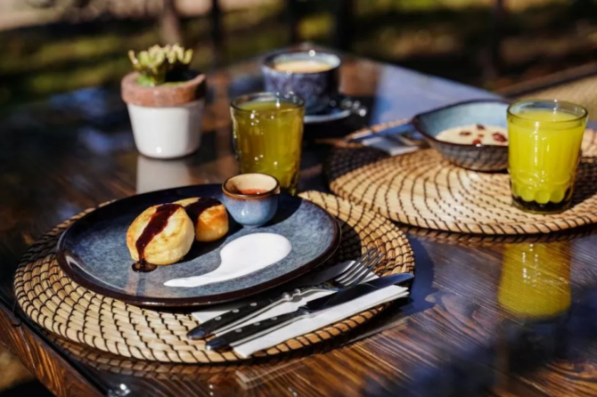 Vacationers are given the opportunity to choose one of the most suitable types of food for them: “breakfast only” or “full board”. On a small elevation on the territory of the hotel “Point on the map” among the tall pine trees there is a building of a cozy café with a spacious outdoor terrace.
