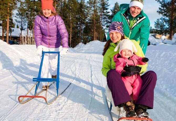 All equipment is provided to children free of charge. The exception is “vatruski”. The cost of renting a children’s tubing in the winter of [y] is 150 rubles per hour.