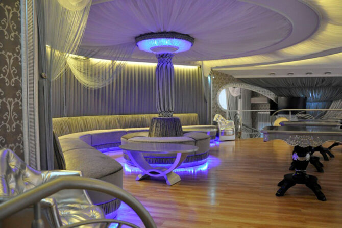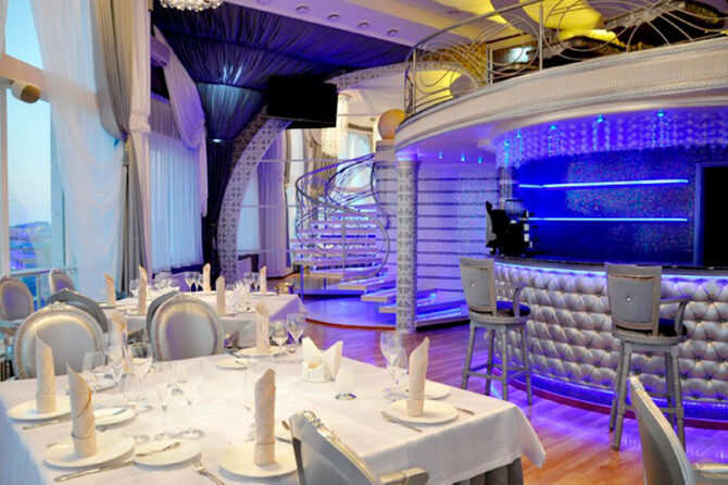 A fun night can be spent in the disco club “VERSAL”. Entertainment area in the spirit of the French kings is located on two floors. On the first – the dance floor, the bar counter, strewn with stones Swarovski, the stage and pouill for the performance of the artists of the show, tables and menus for those who want to have dinner and drink a cocktail of elite alcohol. On the second floor there is a VIP zone with a separate entrance from the street. Here everything is like in the palaces of the times of Louis – boudoires, lodges, magnificent paintings on the walls, stucco on the ceilings, etc. The club is considered the most prestigious place for rest in Evpatoria.