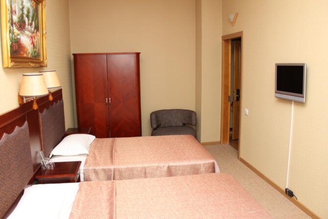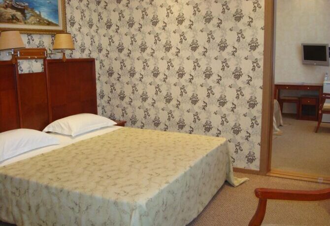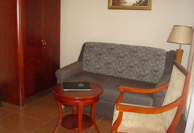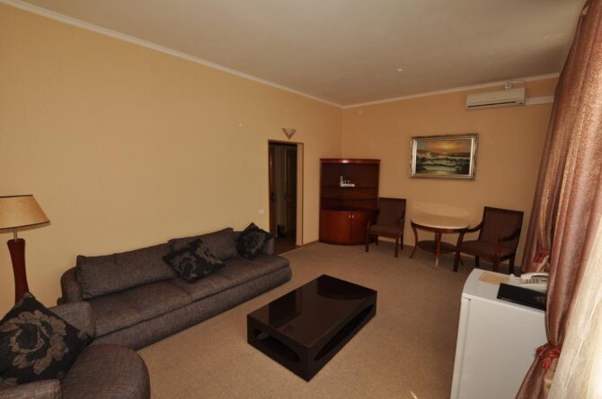 - Two-room suite (30 sq. m.) – consists of a bedroom and a living room. The rooms are passable. There is one extra bed on a sofa bed in the living room.