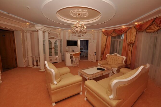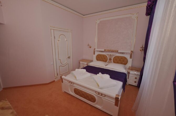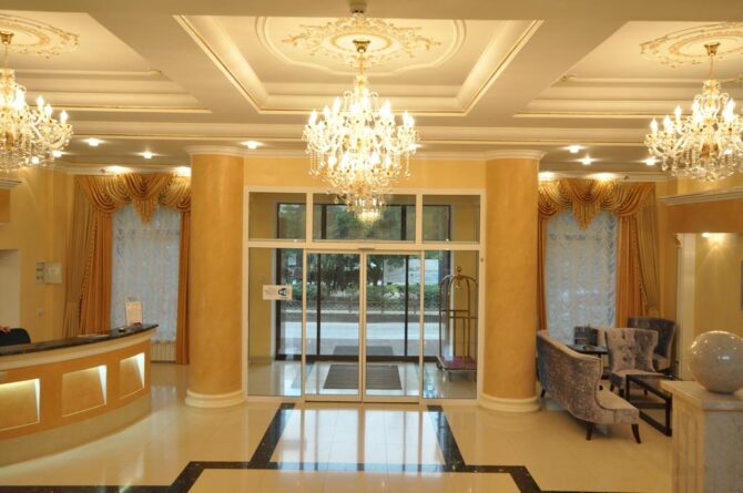 The building was built in 2009. Since then, it has been updated annually, reconstructions are carried out in some places. The owners want to reach the level to European standards. The modern building, built in the palace style, has become a real decoration of the center of Evpatoria. Behind the clean and well-groomed façade hides an even greater splendor of rooms, halls, restaurants, lounge areas. The staff is focused on the needs of customers. Every guest is cherished here.