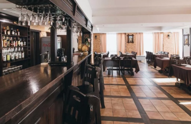 All dishes are prepared according to original recipes. Guests of the restaurant can choose drinks and food from the menu or take set breakfasts and dinners. The establishment can accommodate up to 54 guests. The spacious hall of the restaurant is used for banquets, family celebrations, weddings, receptions and other events.