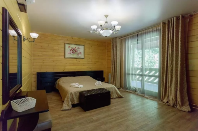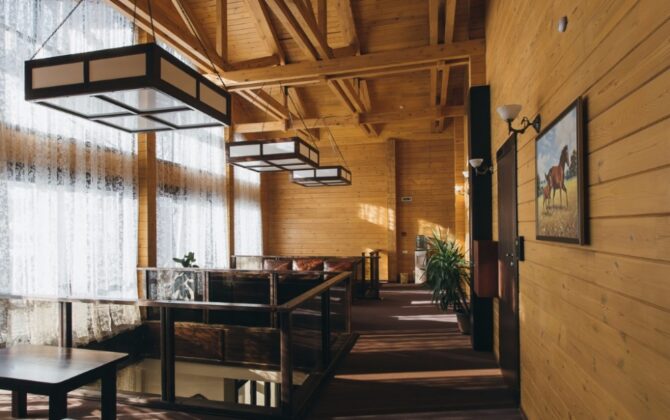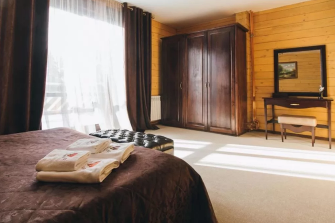 - three-storey hotel, built of cedar logs; inside the institution there are 13 cozy rooms of four categories: “suite”, “standard”, “apartment” and “family suite”;