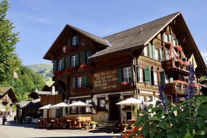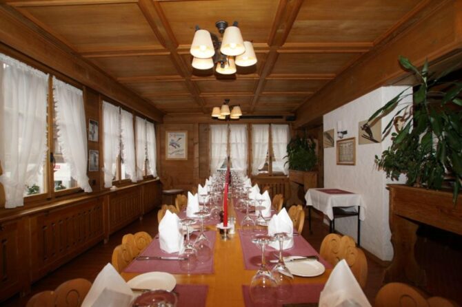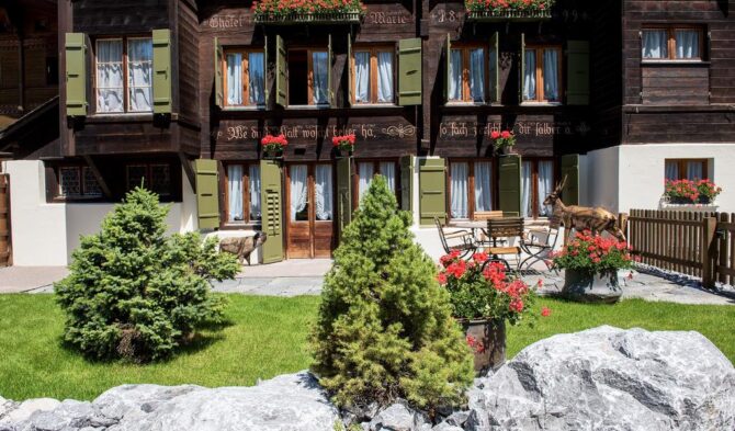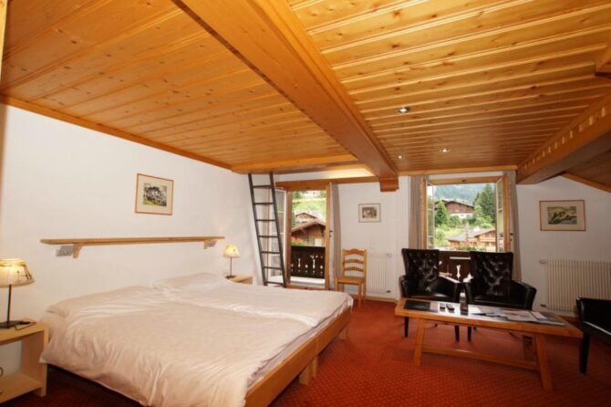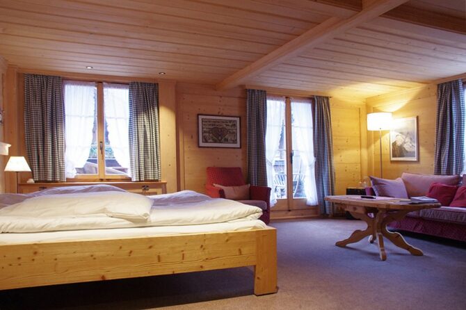 Once again, historic hotels welcome guests, the Posthotel Rössli was built in 1845. The house stands in the center of the village of Gstaad. The road to 6 mountain lifts starts nearby. Across the street, guests will see a market and a shop. 1 km from the hotel river, further, in 7 km, there is a picturesque lake.