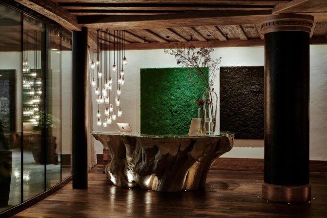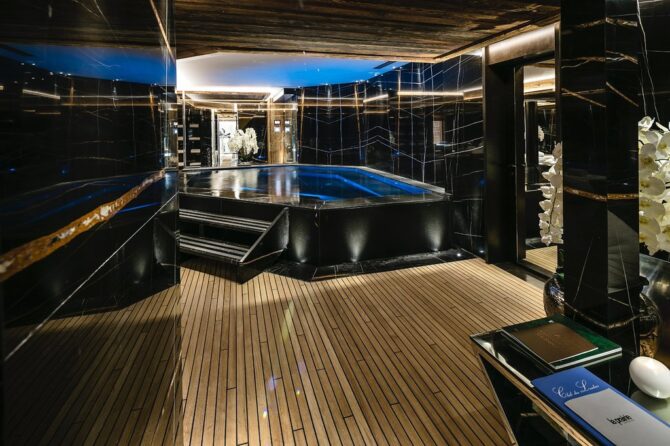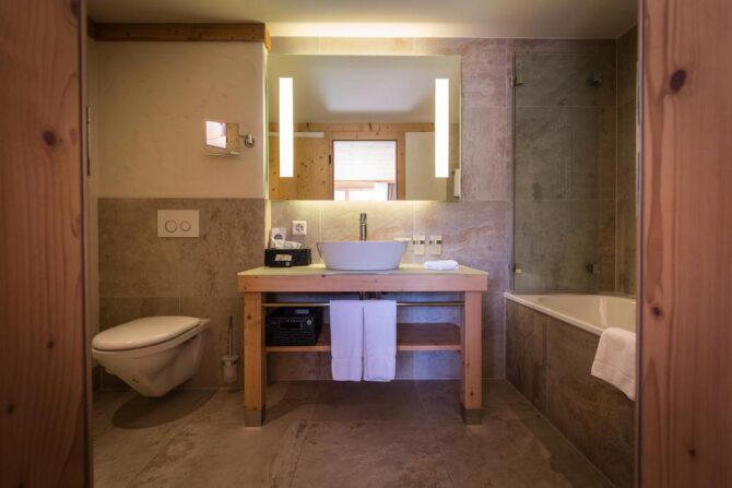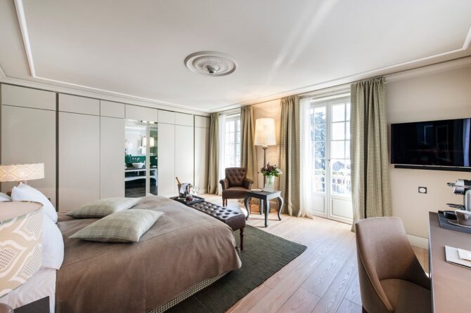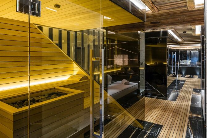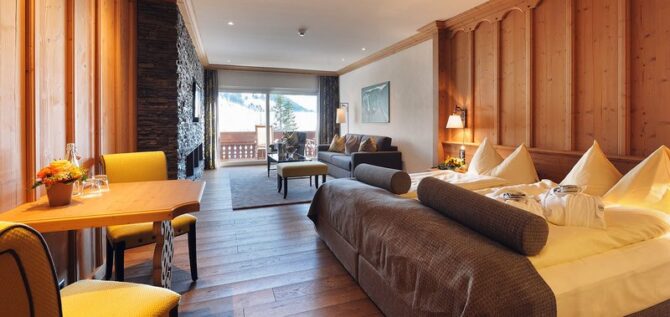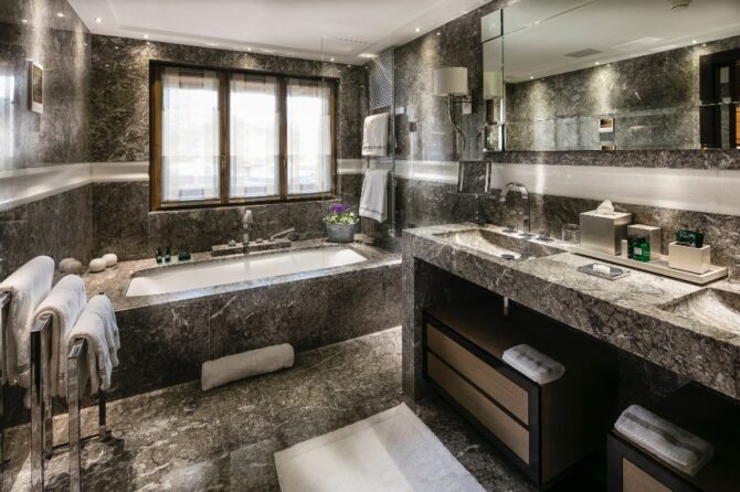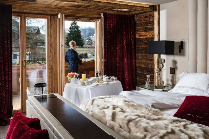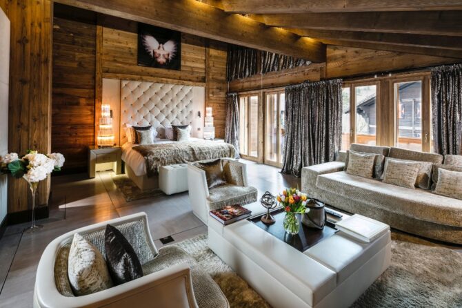 «Ultima Gstaad» is not just a hotel at the foot of the Alps. Vacationers stay in the Pearl, Satin Suite or choose the Presidential Suite with its own elevator in the room. Voluminous chandeliers, plush plain bedspreads on furniture, marble kitchen: everything is designed in the same style. The sun-drenched window offers mountain views. In total, the hotel has 11 suites, 6 residences. The guest can invite a personal chef to the room.