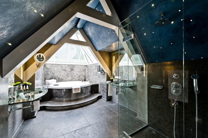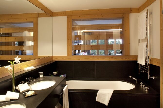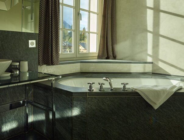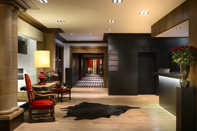 “LeGrand Bellevue”stands in the center of the park of the town of Gstaad in Switzerland. The surrounding area includes mountain lifts, a spa area, a wellness centre and a private cinema. To the airport of Beln the distance is 50 km away. In the bar “Lonard’s Cella” 9000-thousandth collection of wines.