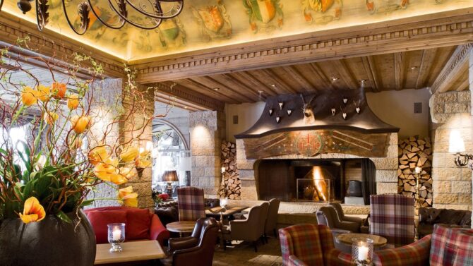 TheOldenHotel in the centre of Gstaad looks like an old castle. Mountain lifts and ski slopes are located nearby. The nearest airport is Bern-Belp. It is almost 50 km of the way. Geneva International Airport is 90 km away.