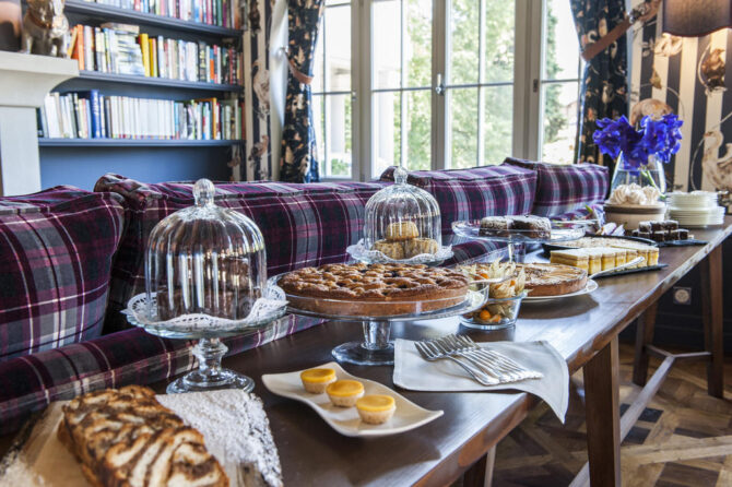 After a busy day, one of the guests rests at the hotelparty, someone reads in silence. There is also a library on site.