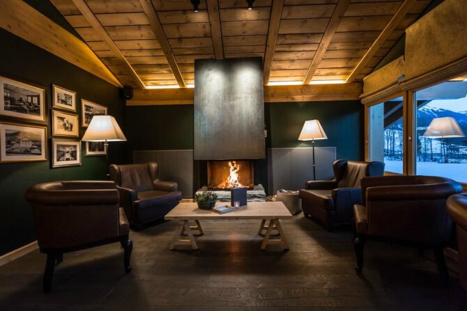 Finishing modern rooms with wood gives a sense of safety and comfort. Guests meet the dawn from a window overlooking the mountains.