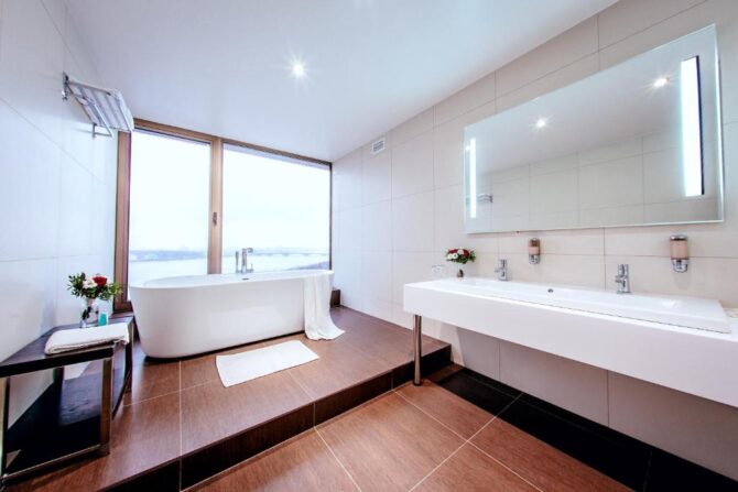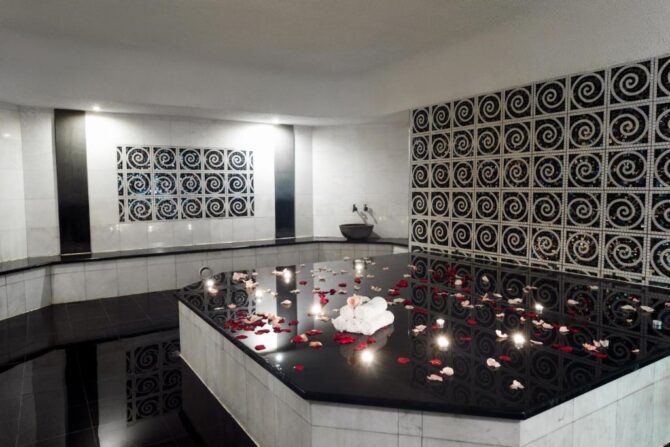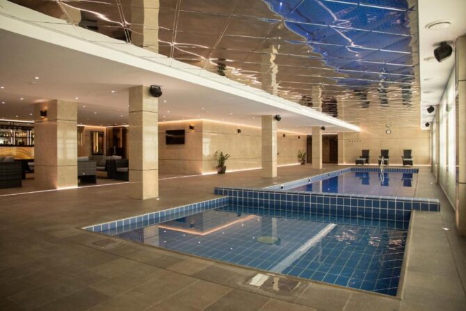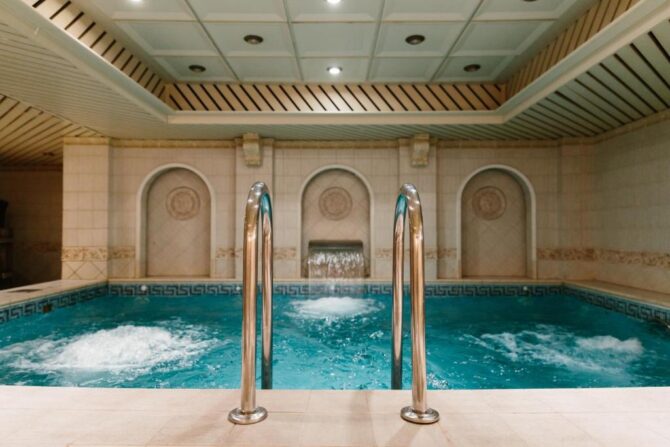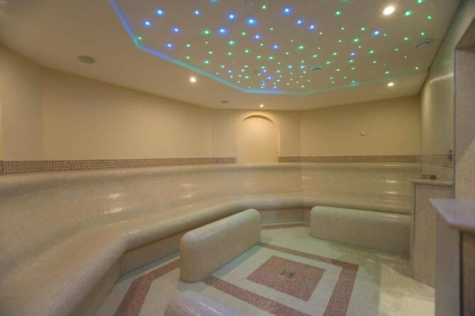 The magnificent spa is a real gem of the hotel. It offers a Roman-style swimming pool, hot tubs, showers and 8 different saunas. Here you can take a steam bath in a traditional Finnish sauna, immerse yourself in the caldarium and sanatorium, visit the snow sauna with real snow or the sauna in the cave.