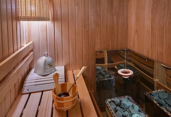 On New Year’s Day, you can really relax here. For health and relaxation, a cozy wellness center with a sauna, an imitation of the starry sky, an ice fountain and a Jacuzzi, a gym and a healthy food menu from a professional nutritionist has been created.