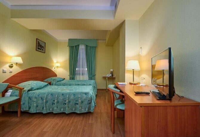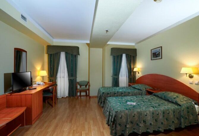 In the cozy café “Versailles” breakfasts are held on the “buffet” system. In the restaurant “Gzhel” guests can taste traditional dishes of Russian cuisine, prepared according to original recipes. And in the lobby bar of the hotel you can enjoy excellent Italian coffee with dessert.