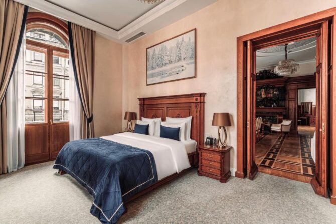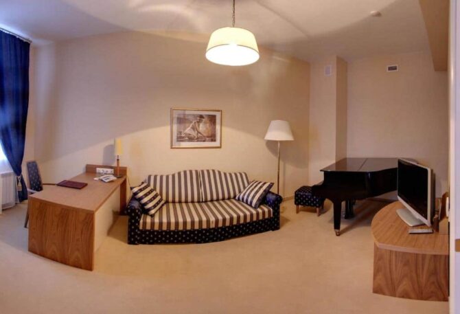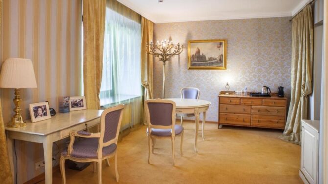 This is a truly luxurious complex that allows guests to immerse themselves in the world of tsarist Russia and stay in the interior of a real palace of the XIX century. The hotel conveys the imperial spirit and style and at the same time stands out for its freshness, abundance of light and modern solutions for the comfort and convenience of guests.