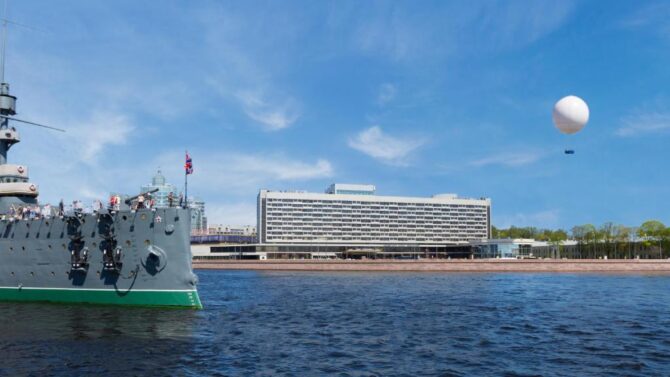 “St. Petersburg” is an ideal place for business meetings and events, as it is located in the heart of St. Petersburg. A modern comfortable hotel is located on the banks of the Neva River. From the windows of the hotel there is a view of the famous cruiser “Aurora”.