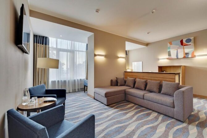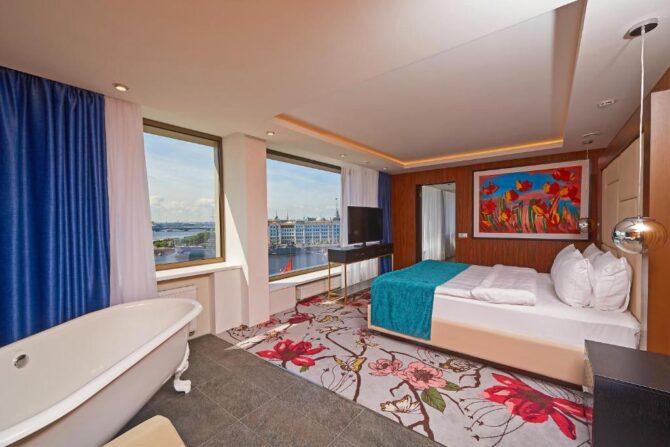 Solo Sokos Hotel Palace Bridge, located in the historic center of St. Petersburg, is a luxury SPA hotel. It is the perfect place to hide from everyday life and city noise. The spacious rooms are furnished in a modern style. Natural wood is used in the interior decoration.