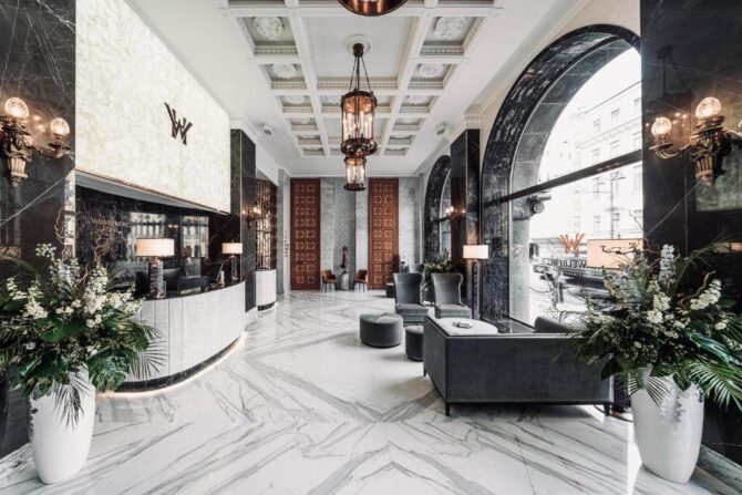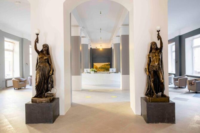 Architecture, art, individuality, trends in gastronomy, culture and business, innovation and theatre are gathered in one special hotel. The interior of the hotel “Wawelberg” is decorated with sculptural masterpieces, photographs of the extraordinary nature of Russia and an exclusive art object of the famous glass artist.