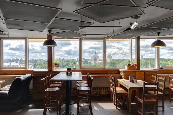 Confectionery “Mosponchik” is a favorite place for gourmets. Here you can taste a variety of sweets and cakes. And the lobby bar is the perfect place to relax with friends with a drink or a cup of aromatic coffee. Restaurant “Pivorama” invites guests to taste Japanese and homemade dishes.