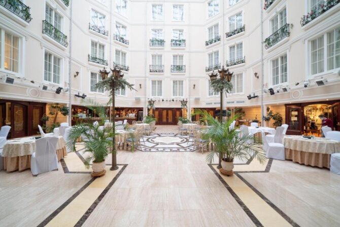 The hotel also has a large banquet hall, 6 conference halls, a bar “Library” overlooking the Palace Square, a spa complex, a café-restaurant “Winter Garden” and many other high-level services.