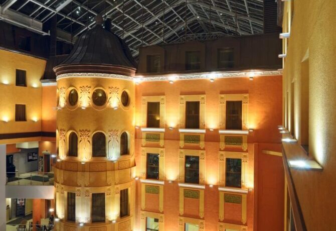 The hotel’s restaurant serves a buffet breakfast, with special attention paid to Russian cuisine. Bars “Eight” offers local and European cuisine. It is open around the clock. A banquet restaurant “Moscow” is an ideal place for global celebrations, receptions, weddings. The capacity of the hall is 1000 people.