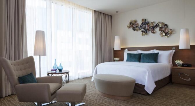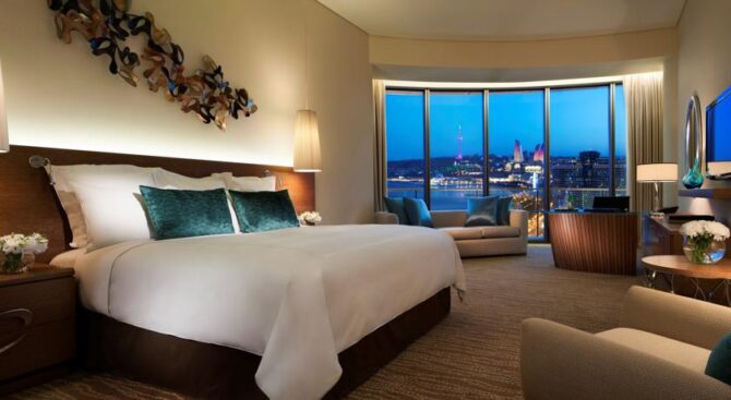 Many hotels in the center of Baku have different architectural and design features. JW Marriott Absheron Baku Hotel was built using all modern technologies. In its design there are many windows. Thanks to this, each room offers a magnificent landscape. Depending on which side of the room is located, from the window you can see the Caspian Sea or filled with secrets and attractions, the center of the capital.
