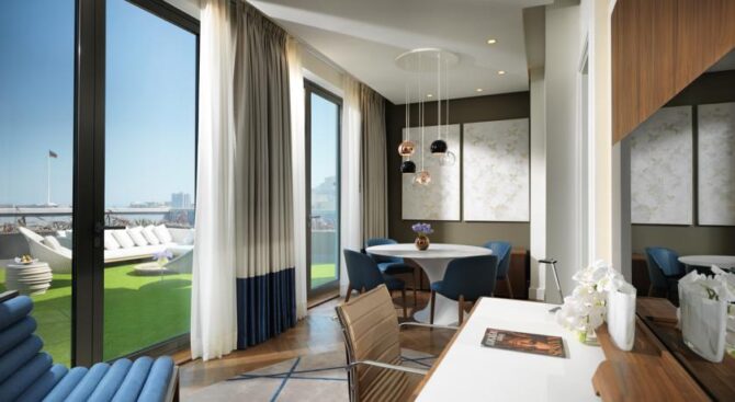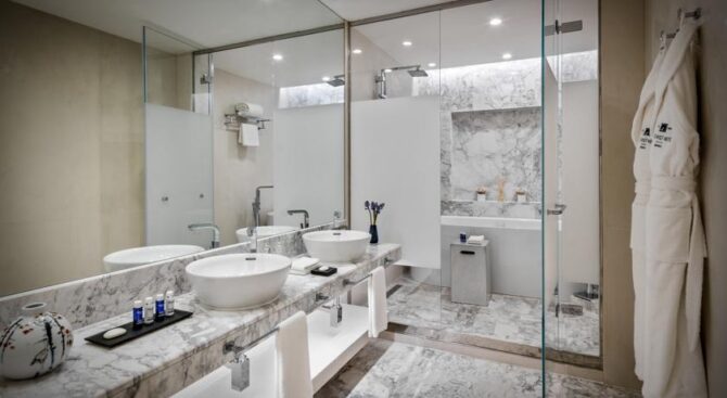 - Each room has a spacious and chic bathroom with panoramic windows;