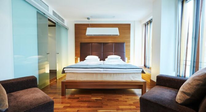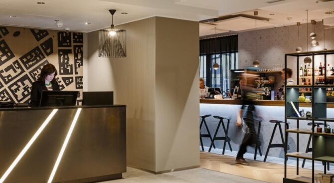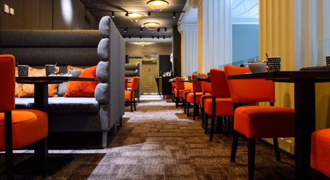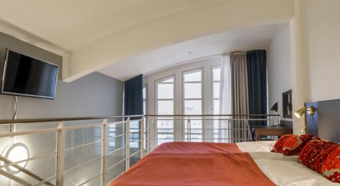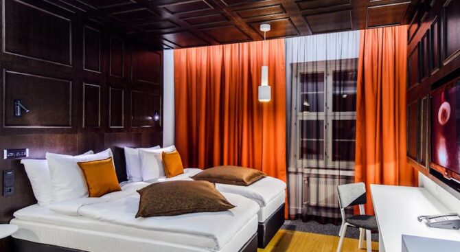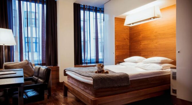Hotel F6 in the center of Helsinki is considered one of the best. This is a unique institution of its kind – a boutique hotel. It is located between the largest shopping streets, nearby is a shopping center. The Assumption Cathedral is a kilometre away, and in just 5 minutes you will reach the market square.
