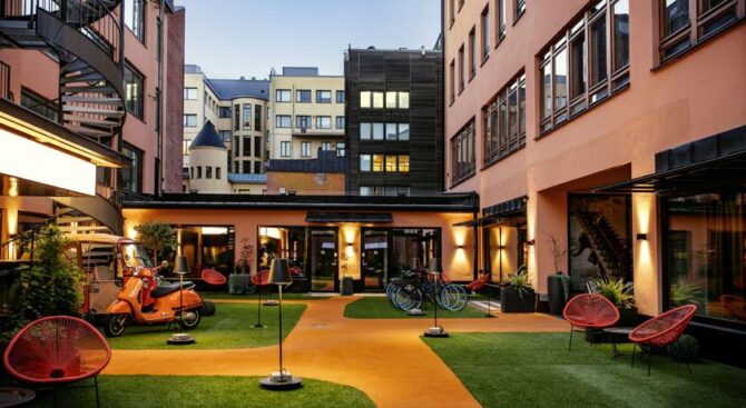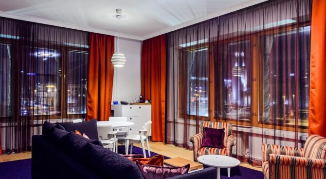 One of the city’s best hotels, The Hotel Indigo Helsinki-Boulevard is located in an elite area, close to the main shopping street and only 600 meters from the metro. Here you will be met like at home – the rooms are very cozy, everywhere there are coffee machines, free soft drinks. The air-conditioned rooms feature a TV, minibar, bathroom amenities and a rain shower.