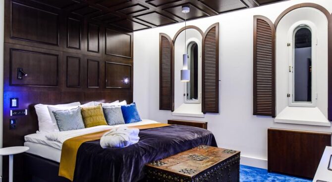 Guests are accommodated in luxurious rooms of comfort, style and luxury class. All rooms have a large bathroom, comfortable beds with orthopedic mattresses, TV, air conditioning, high-speed internet. Some rooms have sea views and some overlook Helsinki’sold centre. Market Square is just a 5-minute walk away.