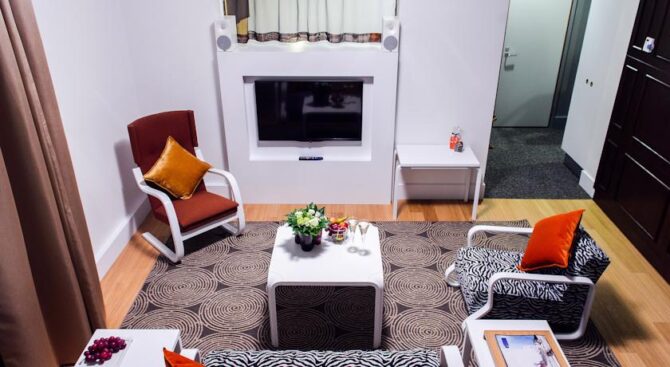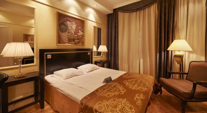 Each room has a large TV with satellite dish, internet, air conditioning, hairdryer, kettle, bath accessories. On the territory of the hotel there is a fitness center, a SPA center, where guests can relax for an additional fee. Guests of the suites can use the spa free of charge. Parking is also available, and on the ground floor of the building there is a cozy café-bar with delicious food. Pets are allowed. The hotel staff will meet friendly, possible transfer from the airport.
