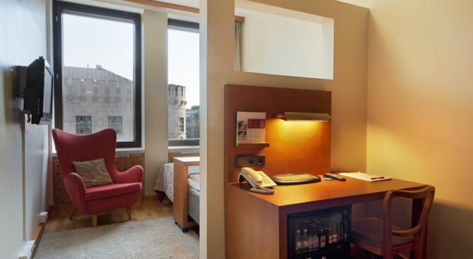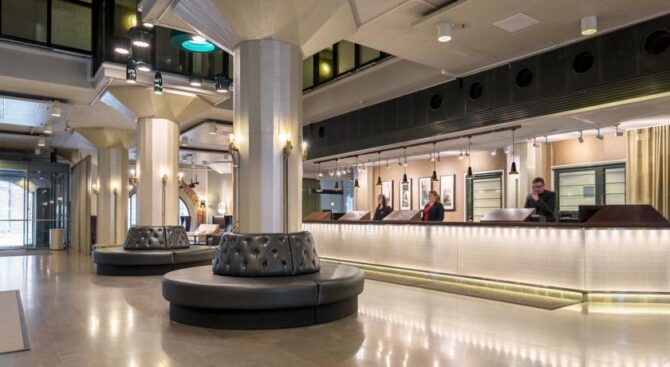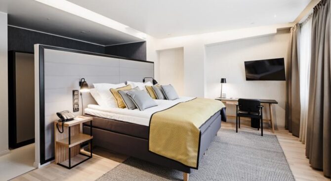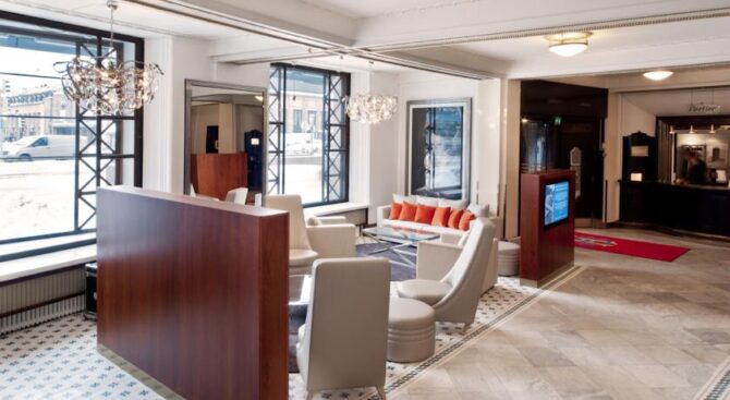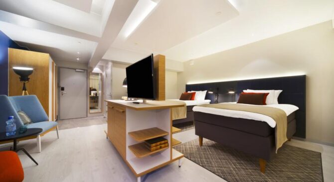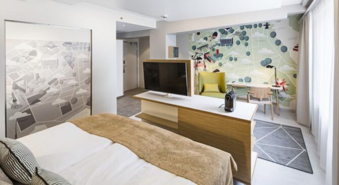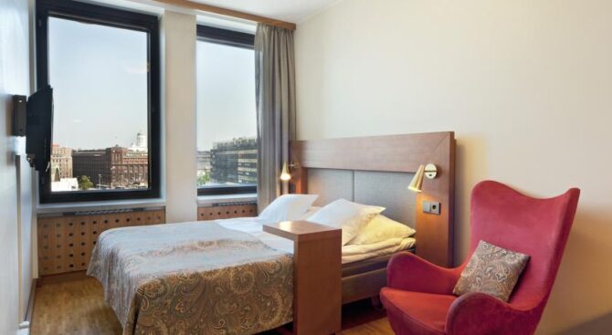The hotel is located near the train station, near the shopping street of the Esplanade. The location is very convenient, you can settle right in the center of the capital, there will be shopping centers, interesting places for entertainment, restaurants, cafes and bars. Original Sokos Hotel Vaakuna Helsinki in the centre of Helsinki is very popular among tourists. The room is very cozy, made in Scandinavian style. The hotel itself is located in a building that is an architectural monument.