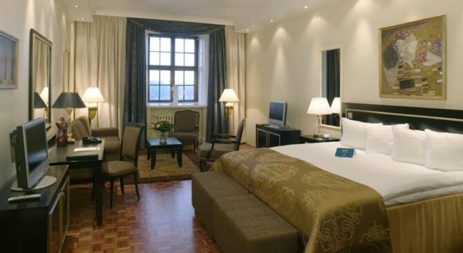 The hotel was opened in 1917 and since then receives tourists from all over the world. On the territory of the hotel there is a wonderful restaurant. The Radisson Blu Plaza Hotel is located next to the train station, and a shuttle service can be arranged from the airport.