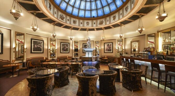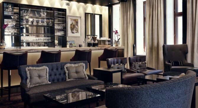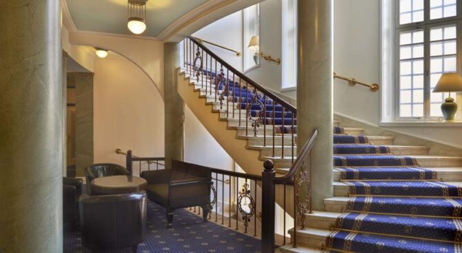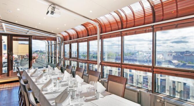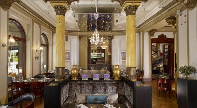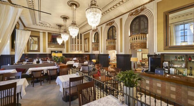 The Hotel Seurahuone Helsinki in the centre of Helsinki has retained the charm of the early last century. On the ground floor there is a bar with a fountain, covered with a glass dome. In the restaurant you can enjoy exquisite French cuisine.