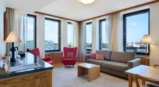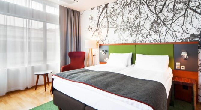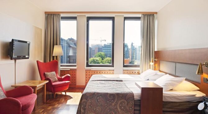 Radisson Blu Plaza Hotel accommodates guests in modern rooms with all amenities – air conditioning, TV, rooms are decorated in accordance with the culture and characteristics of the life of the Finns. The hotel has a fitness center, bar and lounge, de in the morning breakfasts are formed for guests. Nearby is a lively street, which can be reached in just 5 minutes to the theater or casino, around many places for entertainment and cultural monuments. The hotel staff speaks different languages.