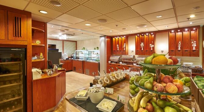 In the hotel you will be offered comfortable rooms with a full set of amenities – TV, mini-bar, bath amenities, air conditioning. Bicycles or Nordic walking poles can be rented. There are rooms of different classes – standard and suite, rooms for two or family type, as well as rooms for non-smokers and guests with animals.
