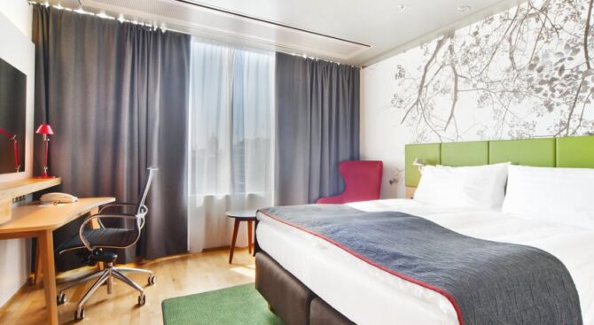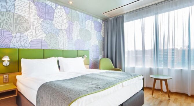 Holiday Inn Helsinki City Centre offers standard and executive rooms for 2-4 people, with double or single beds. Each room has air conditioning, internet, a full set of toiletries, TV and all necessary furniture. Guests can work out in the gym, and you can play table tennis or football in the lobby. On the ground floor there is a café where you can order a delicious breakfast.