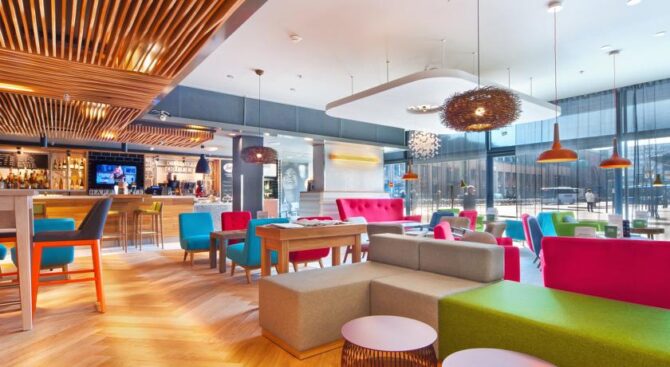 On the ground floor of the building there is a branded clothing store Mark and Spencer, where hotel guests are given a 10% discount.