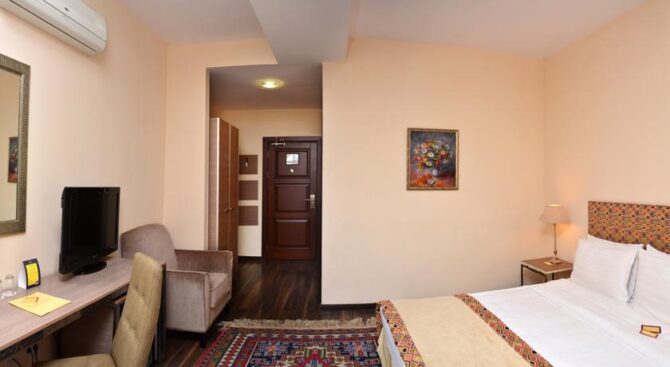 A small three-star hotel, decorated in the style of “modern”. Rooms are spacious and brightly decorated. The hotel is located right in the city centre, 2 steps from Rustaveli Avenue.