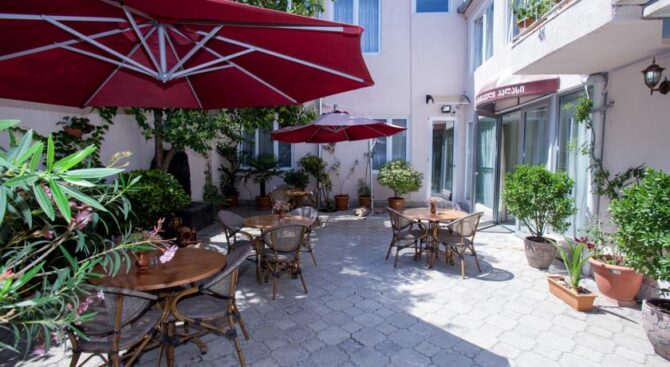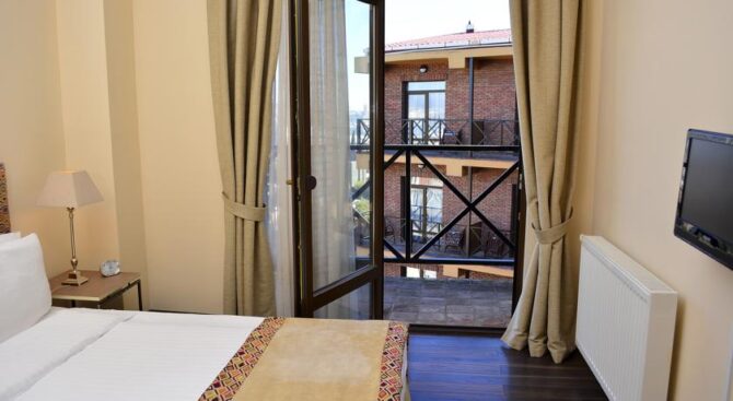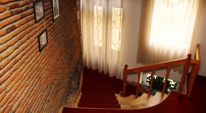 The hotel is located in a building with typical Georgian architecture and offers 24 rooms of different levels of comfort. The rooms are spacious, bright, with wooden furniture. Upon arrival, you can choose to stay either in a room with a terrace or with a balcony. Each room has everything you need: safe, toiletries, TV. The hotel provides the possibility of ordering a transfer from the airport and back for an additional fee.