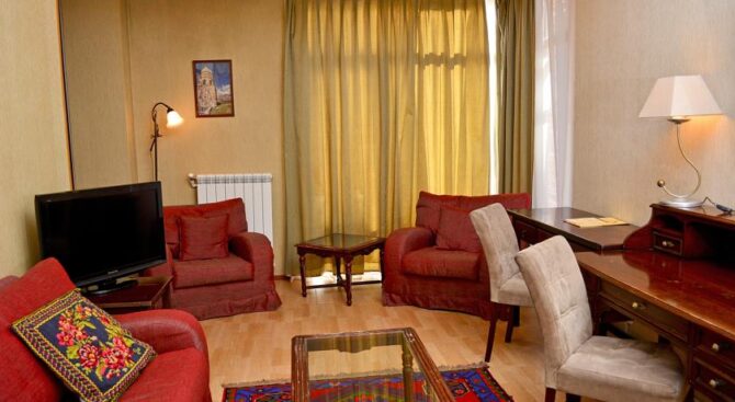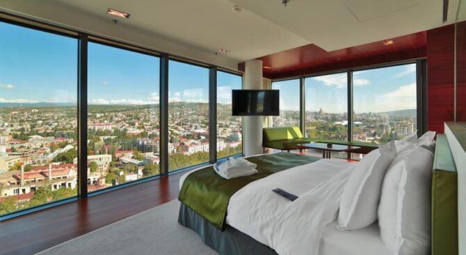 For a fee, you can call a transfer from the airport and back. The hotel is directly opposite the Opera and Ballet Theatre, and Rustaveli Metro Station is just a couple of minutes’ walk away. The Pantheon can be reached on foot in 5-7 minutes.