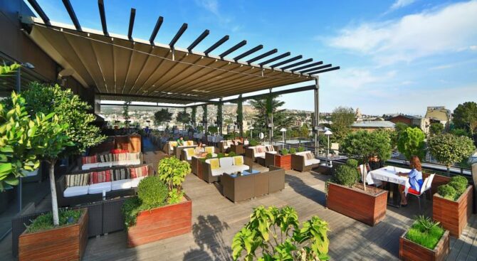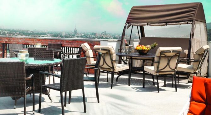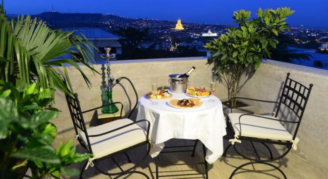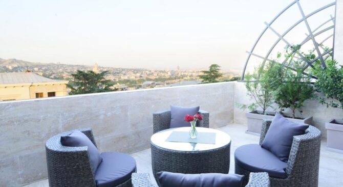 The Terrace Boutique Hotel is a comfortable four-star hotel located in the heart of the Georgian capital and made in the style of “high-tech”. Each room here will provide you with a TV, air conditioning and toiletries. The hotel is especially attractive for businessmen, because it has a conference room. Also from the advantages of the hotel is to highlight free Wi-Fi. Breakfast at the hotel is continental and at the request of the guest can be delivered directly to the room. There is free parking near the hotel.