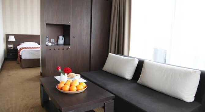 The hotel has everything for a comfortable stay of guests: in addition to free Wi-Fi and concierge services, you can visit the gym and restaurant, which serves exclusively Georgian cuisine.