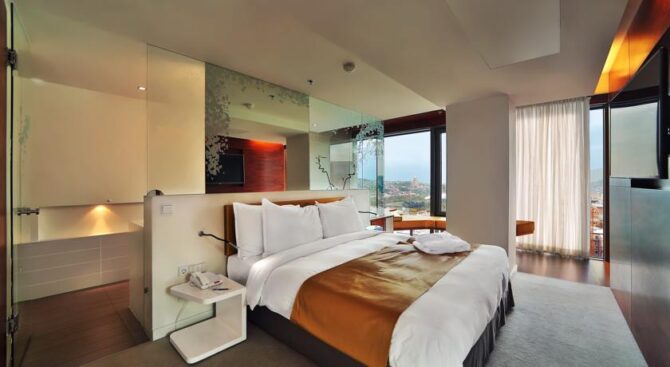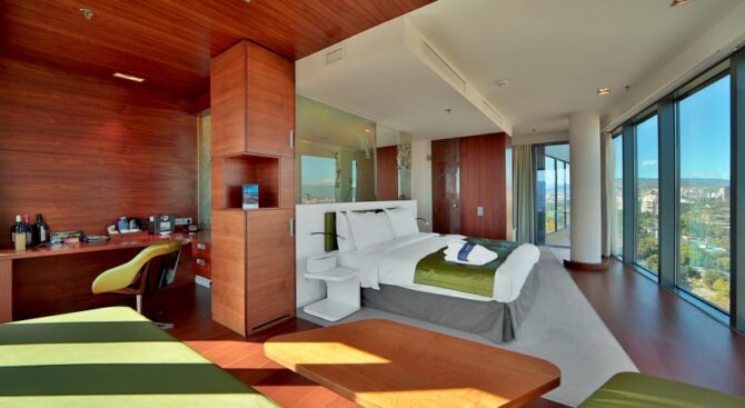 “Gorgeous city view, mega soft bed and comfortable room with high ceilings. Breakfast is included in the price. Of the minuses I can note the audibility (walls as if there are no in principle), as well as the inconvenient location of the hotel. If you’re not by car, it’s going to be very difficult to get to it.”