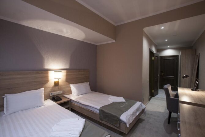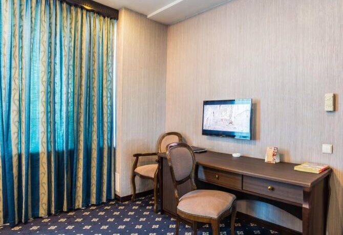 Compact five-storey hotel is located 6 km from the international airport. In the number of rooms: 4 standards, 53 rooms of class “Twin”. It offers laundry, transfer up to 11 people (surcharge), café. A continental breakfast is served in the morning. During the day, the kitchen prepares national and European dishes. Hotel owners regularly introduce special offers and hold promotions with discounts on certain services. The bed and breakfast service is appreciated by transit passengers, and the hotel provides transfer services both to the airport and to the railway station.